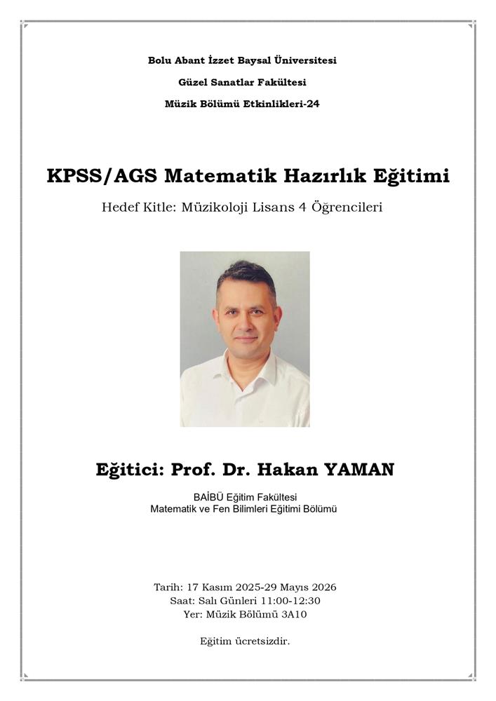Etkinlik No 24: KPSS/AGS Matematik Hazırlık Eğitimi – Prof. Dr. Hakan Yaman
